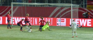 Torabschluss ging in der 90. Spielminute nur knapp am rechten Pfosten vorbei. Die Wolfsburgerin Peter