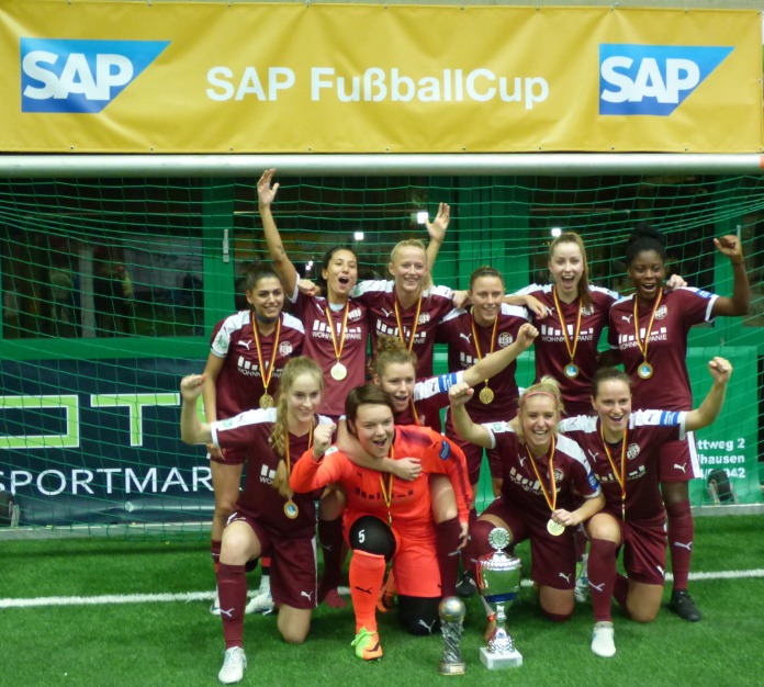 Wenn es Winter ist und draußen Kälte herrscht, dann ist es Zeit für Hallenfußball. So auch am Sonntag, als der zehnte SAP-Cup auf dem Programm stand. Bereits am Freitag zuvor hatten sich für dieses Turnier die Mannschaften TSG 1899 Hoffenheim II, SG 99 Andernach und Karlsruher SC (in der Reihenfolge der Endplatzierung) für das Großereignis der Metropolregion qualifiziert. Ein Ereignis, bei dem auch Turbine Potsdam mit von der Partie war. Dies besonders vor dem Hintergrund, dass keine Mannschaft eine Antrittsprämie erhält, wie Ralf Zwanziger verriet. Der für die Hoffenheimer Frauen zuständige Zwanziger stellt die Kontakte zu den anderen Vereinen her. Es gäbe ausschließlich eine Beteiligung an den Fahrtkosten. Zudem würden die Übernachtungskosten getragen. Ausschließlich die ersten vier Mannschaften, die beste Torschützin und die von den Vereinsverantwortlichen gewählte Spielerin und Torfrau des Turniers können sich über eine finanzielle Zuwendung freuen.