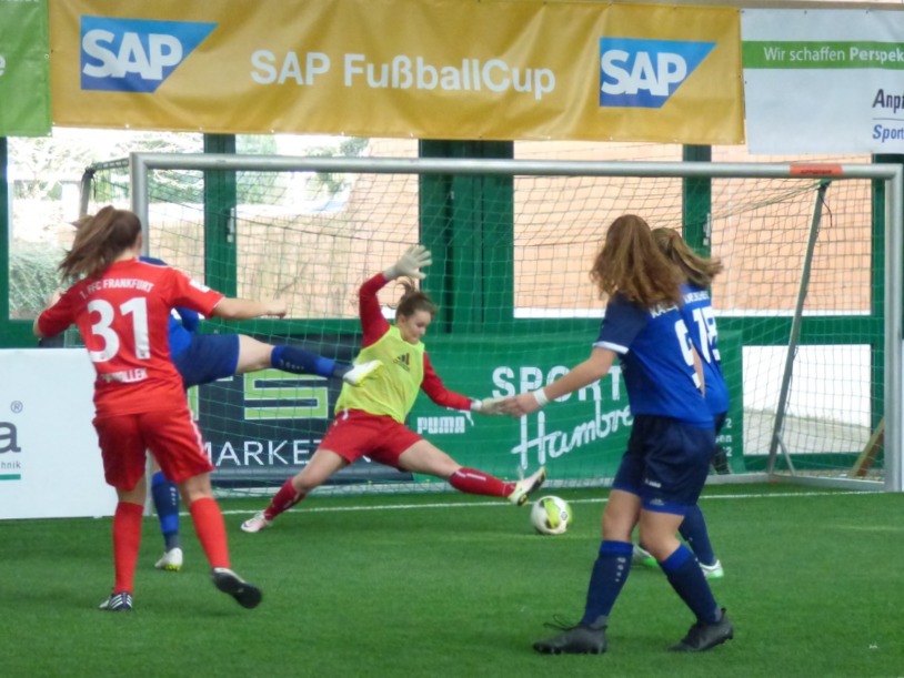 sie gegen den 1. FFC Frankfurt während der 14-minütigen Spieldauer in Bedrängnis und unterlagen den Hessinnen deutlich mit 11:0, gleichzeitig das höchste Ergebnis während des Turniers. Einige knappe Ergebnisse gab es aber ebenfalls zu bestaunen. Mitunter konnten die Mannschaften kurz vor Schluss