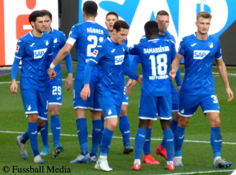 Zunächst durften die Gäste erneut jubeln. Nach einer Kopfballvorlage an der Fünfmeter-Linie von Weghorst traf Admir Mehmedi, stand aber beim Zuspiel im Abseits. So erhielt der Schiedsrichter die Information durch den Video-Assistenten, dass das Tor irregulär erzielt wurde (40.). Gerade, als die 45. Minute lief, durften die Hausherren jubeln. Nach einem Konter flankte Andrej Kramaric den Ball mustergültig zu Christoph Baumgartner, der freistehend vor Casteels einnicken konnte. So ging es mit 1:1 zum Pausentee. Zurück auf den Platz ging es allerdings nicht mehr für Bicakcic, der durch Steven Zuber ersetzt wurde. Ebenfalls blieb Rudy in der Kabine, für den der Winterneuzugang Jacob Bruun Larsen zum Einsatz kam (46.).