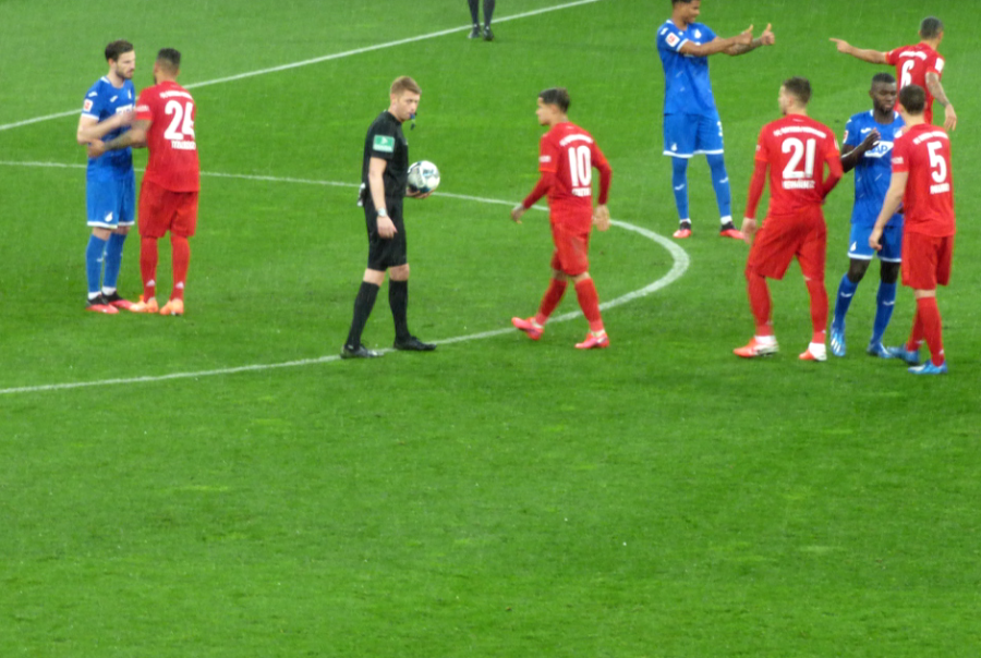 War Lucas Ribeiro im Gastspiel bei Borussia Mönchengladbach nach seiner Einwechslung noch zum späten Ausgleich gekommen, war er diesmal an einem Gegentreffer beteiligt. Nachdem die TSG abermals keinen Zugriff auf die Gegenspieler bekam, konnte Philippe Coutinho schießen. Hierbei fälschte der drei Minuten zuvor eingewechselte Ribeiro unhaltbar ab - der Rekordmeister mit dem vierten Treffer in Führung (33.). Auch Linksverteidiger Alphonso Davies kam zu einem Torschuss, doch Baumann lenkte seinen Versuch zu einer Ecke ab. So ging es mit einem deutlichen Rückstand, aber auch der Forderung aus der Südkurve „wir woll’n euch kämpfen sehn‘“ in die Halbzeitpause.