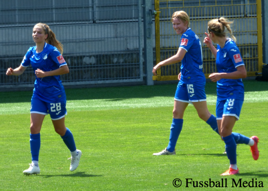 Auch, wenn es im weiteren Verlauf der ersten Halbzeit keine klare Torchance mehr gab, waren die Frankfurterinnen aber ebenfalls im Spiel und kamen in den Strafraum. Doch ebenso wie Bösl auf der Gegenseite hatte TSG-Keeperin Janina Leitzig ihren Strafraum im Griff, sofern ein Angriff in Richtung ihres Tores durchkam. So ging es mit dem Zwei-Tore-Vorsprung für die Gastgeberinnen in die Kabine.